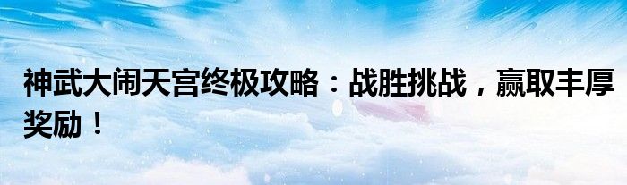 神武大闹天宫终极攻略:战胜挑战,赢取丰厚奖励!