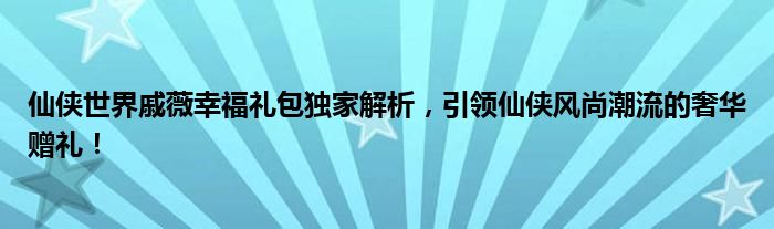 仙侠世界戚薇幸福礼包独家解析,引领仙侠风尚潮流的奢华赠礼!