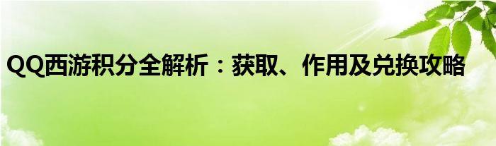 QQ西游积分全解析:获取、作用及兑换攻略