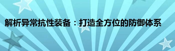 本文将详细介绍异常抗性装备的概念、特点、应用场景及其重要性。通过对这些装备的深入解析,我们将探讨如何构建一套全方位的防御体系,以应对各种潜在威胁和挑战。