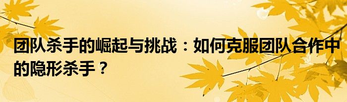 团队杀手的崛起与挑战:如何克服团队合作中的隐形杀手?