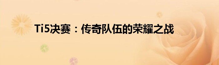 在这令人热血沸腾的电子竞技时代,一年一度的Ti5决赛如期而至。这是一场全球顶尖电竞队伍的荣耀之战,无数粉丝瞩目,激情燃烧。