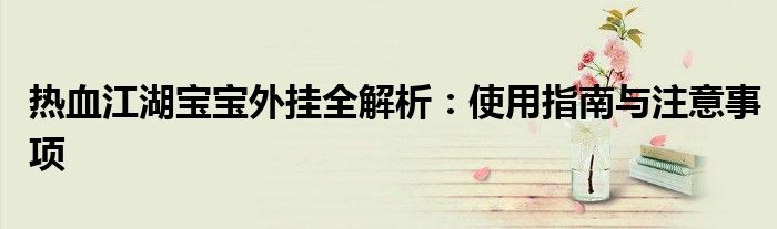 热血江湖宝宝外挂全解析:使用指南与注意事项