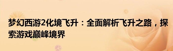 本文将围绕梦幻西游2中的“化境飞升”主题展开,探讨玩家如何在这一游戏环节中获得优势,逐步走向巅峰。我们将从以下几个方面进行详细解析。