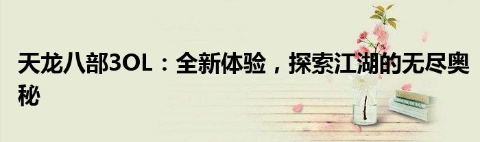 本文将围绕天龙八部3OL这一主题展开,深入探讨这一经典网络游戏中的新特性、玩法、角色以及其他亮点内容。通过了解这款游戏的独特魅力,我们可以感受到其丰富的世界观和深厚的文化底蕴。