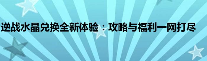 通过以上内容,希望玩家们在《逆战》的水晶兑换系统中能够有更愉快的体验,享受到更多的游戏福利。