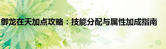 《御龙在天》是一款深受玩家喜爱的游戏,游戏中的加点系统对于角色的发展至关重要。正确的加点可以大大提升角色的战斗能力,而错误的加点则可能导致角色发展受限。本文将为大家详细介绍御龙在天的加点攻略,帮助玩家更好地进行技能分配与属性加成。