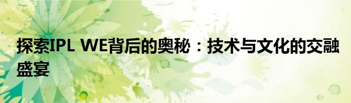 探索IPL WE背后的奥秘:技术与文化的交融盛宴
