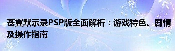 本文将全面介绍和分析以“苍翼默示录PSP”为主题的游戏。我们将深入探讨游戏背景、特色系统、剧情发展以及操作指南,帮助玩家更好地理解和体验这款游戏。