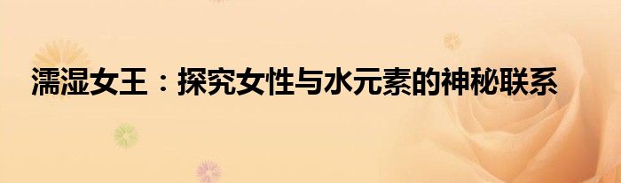 总的来说,“濡湿女王”这一主题展示了女性与水元素的深厚联系。女性以其独特的温柔力量,诠释了水元素的神秘与美丽。在未来,我们仍需要深入探究女性与水元素的相互关系,以期更好地理解女性的独特魅力与价值。