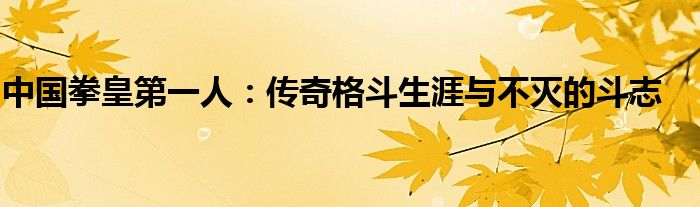 中国拳皇第一人:传奇格斗生涯与不灭的斗志