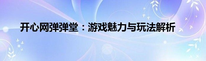 开心网弹弹堂是一款备受欢迎的休闲竞技类游戏,以其独特的玩法和魅力吸引了众多玩家的喜爱。本文将围绕这款游戏展开介绍,带您领略其独特的魅力,并解析游戏的核心玩法。