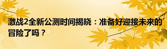 激战2全新公测时间揭晓:准备好迎接未来的冒险了吗?