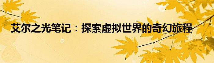 艾尔之光笔记:探索虚拟世界的奇幻旅程