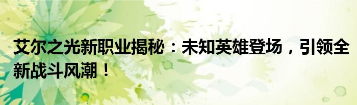 艾尔之光新职业揭秘:未知英雄登场,引领全新战斗风潮!