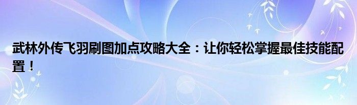 武林外传飞羽刷图加点攻略大全:让你轻松掌握最佳技能配置!