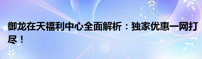 御龙在天福利中心全面解析:独家优惠一网打尽!