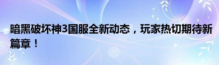暗黑破坏神3国服全新动态,玩家热切期待新篇章!
