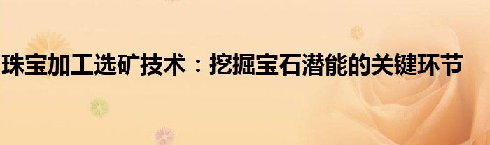 珠宝加工选矿技术:挖掘宝石潜能的关键环节