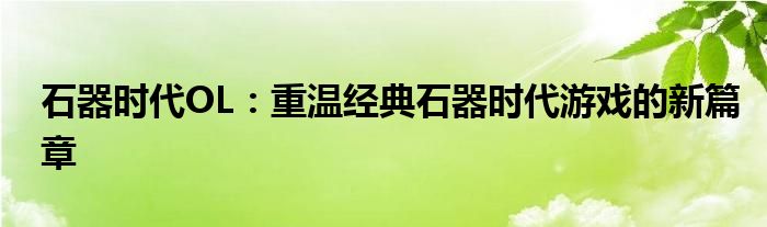 石器时代OL:重温经典石器时代游戏的新篇章