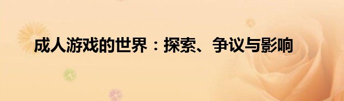 成人游戏的世界:探索、争议与影响