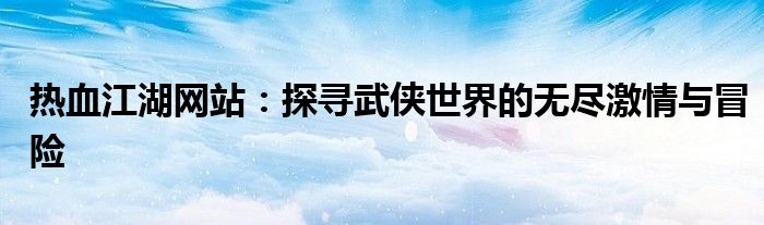 热血江湖网站:探寻武侠世界的无尽激情与冒险