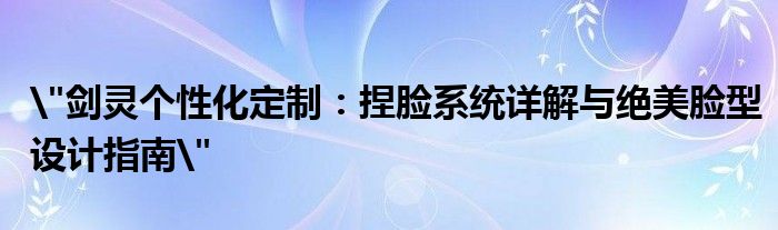 "剑灵个性化定制:捏脸系统详解与绝美脸型设计指南"
