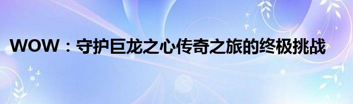 WOW:守护巨龙之心传奇之旅的终极挑战