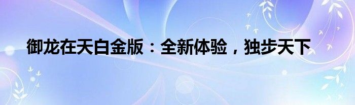 总之,《御龙在天白金版》是一款充满挑战和机遇的游戏,让玩家可以享受到更多的游戏内容和乐趣。如果你是一名热爱游戏的玩家,那么这款游戏一定会让你独步天下,感受到游戏的魅力。