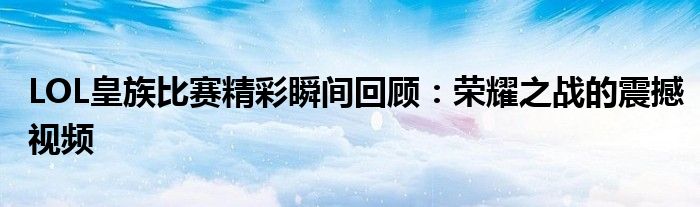 LOL皇族比赛精彩瞬间回顾:荣耀之战的震撼视频