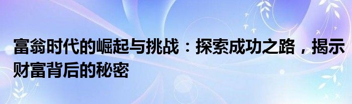 富翁时代的崛起与挑战:探索成功之路,揭示财富背后的秘密