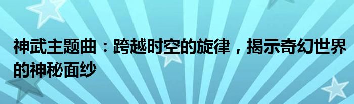 神武主题曲:跨越时空的旋律,揭示奇幻世界的神秘面纱