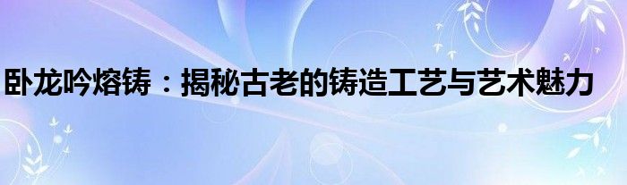 总之,卧龙吟熔铸是一项充满魅力的古老工艺,蕴含着丰富的历史文化和技艺传承。通过深入了解和探索这一工艺,我们不仅可以了解传统文化的魅力,还可以感受到工匠精神的传承和发展。