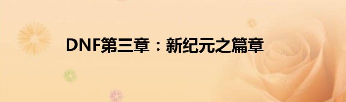 《DNF第三章:新纪元之篇章》是著名游戏地下城与勇士(DNF)系列游戏中的第三部分。在这个全新的章节里,玩家将会探索一个全新的游戏世界,体验到前所未有的冒险与挑战。