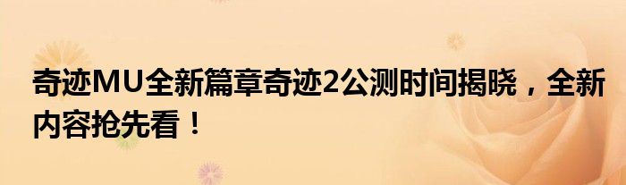 奇迹MU全新篇章奇迹2公测时间揭晓,全新内容抢先看!