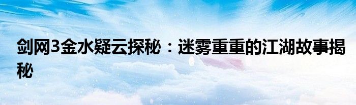 剑网3金水疑云探秘:迷雾重重的江湖故事揭秘