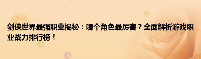 剑侠世界最强职业揭秘:哪个角色最厉害?全面解析游戏职业战力排行榜!