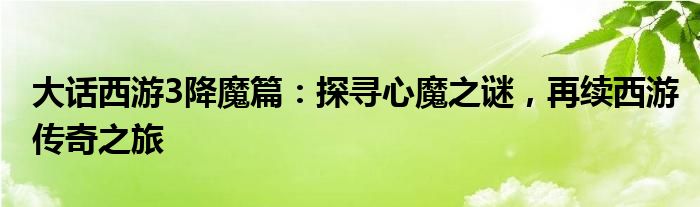 大话西游3降魔篇:探寻心魔之谜,再续西游传奇之旅
