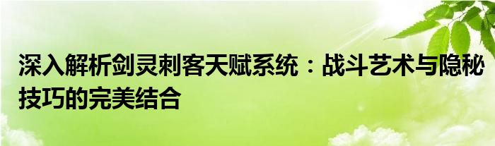 深入解析剑灵刺客天赋系统:战斗艺术与隐秘技巧的完美结合
