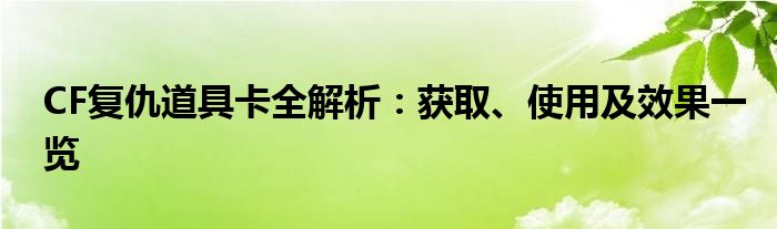 对于热爱CF(穿越火线)游戏的玩家来说,道具卡在游戏中起着举足轻重的作用。而复仇道具卡更是众多玩家关注的焦点。本文将详细介绍CF复仇道具卡的获取方式、使用方法以及效果,帮助玩家更好地利用这一道具。