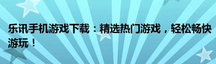 乐讯手机游戏下载:精选热门游戏,轻松畅快游玩!