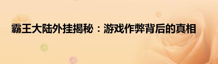 霸王大陆外挂揭秘:游戏作弊背后的真相