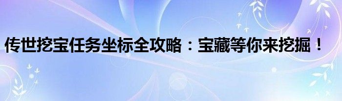 传世挖宝任务坐标全攻略:宝藏等你来挖掘!