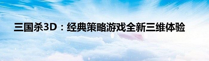 《三国杀3D》是一款以经典策略游戏《三国杀》为基础,全新打造的三维卡牌对战游戏。在游戏中,玩家可以体验到全新的三维场景和人物模型,感受更加逼真的三国世界。