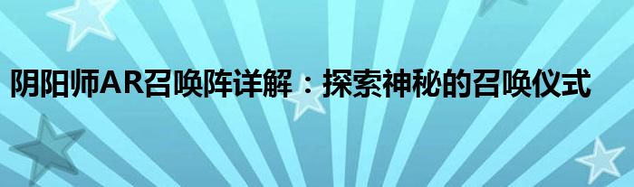 阴阳师AR召唤阵是阴阳师游戏中一个充满神秘色彩的特色功能。通过结合增强现实技术,游戏为玩家们呈现了一个全新的召唤仪式体验。在这篇文章中,我们将为您详细解读阴阳师AR召唤阵的各个方面,带您探索这个神秘的仪式。