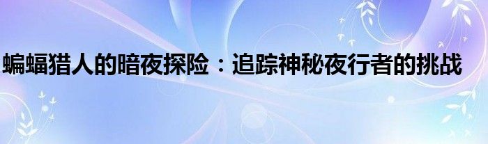蝙蝠猎人的暗夜探险:追踪神秘夜行者的挑战
