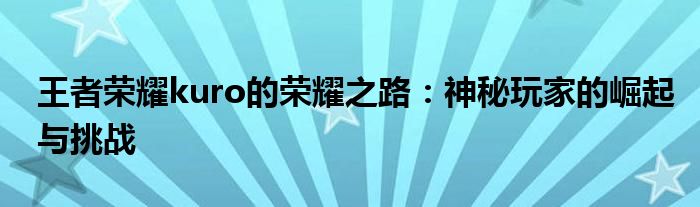 王者荣耀kuro的荣耀之路:神秘玩家的崛起与挑战