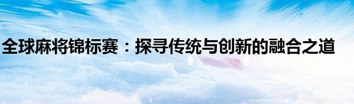 全球麻将锦标赛:探寻传统与创新的融合之道