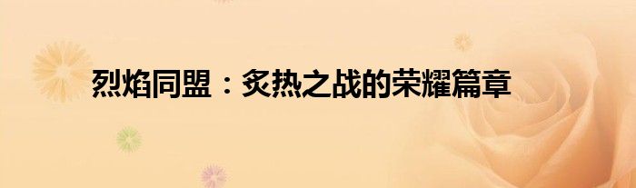 总之,烈焰同盟是一个充满荣誉与挑战的游戏世界。在这里,玩家将体验炙热之战的荣耀篇章,为了信念和荣耀而战斗。加入烈焰同盟,成为最强大的勇士吧!