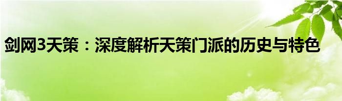 本文将以“剑网3天策”为核心关键词,深度解析天策这一门派的起源、历史背景、特色技能以及在游戏中的定位。